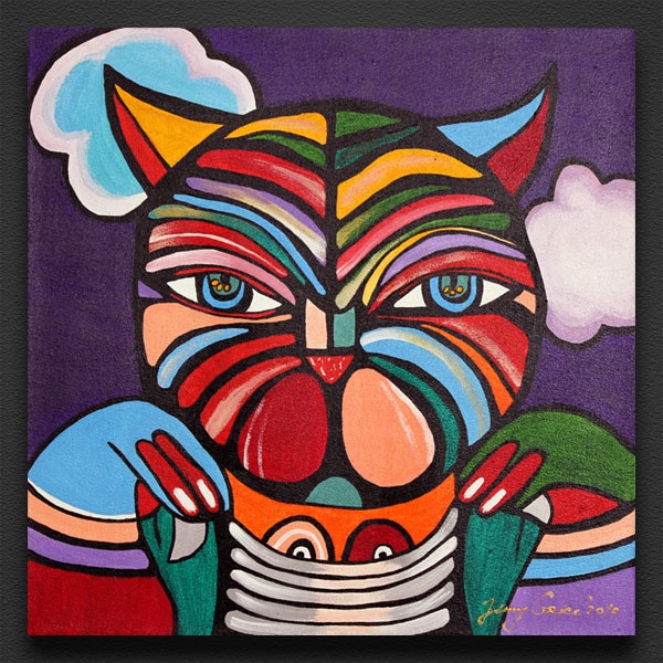 Malgrund: Das Bild ist auf Leinwand mit Holzrahmen (18 mm) gespannt. Die Seiten des Bildes sind bemalt, es kann somit ohne zusätzlichen Rahmen aufgehängt werden.